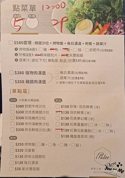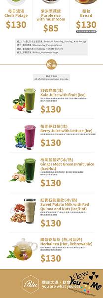 蔬果汁: 任選1杯(價位$130) 飲品皆去冰