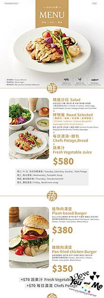$580套餐 --- 精選沙拉+烤物盤+每日濃湯+附餐+蔬果汁