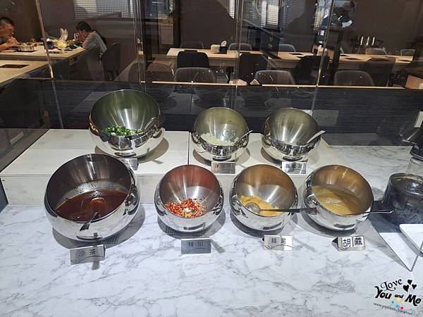 醬料也都在這邊喔!基本 沙茶 蔥 蒜 辣椒 醬油 醋 都有。另外有我第二喜歡的胡麻醬還有洋蔥末!