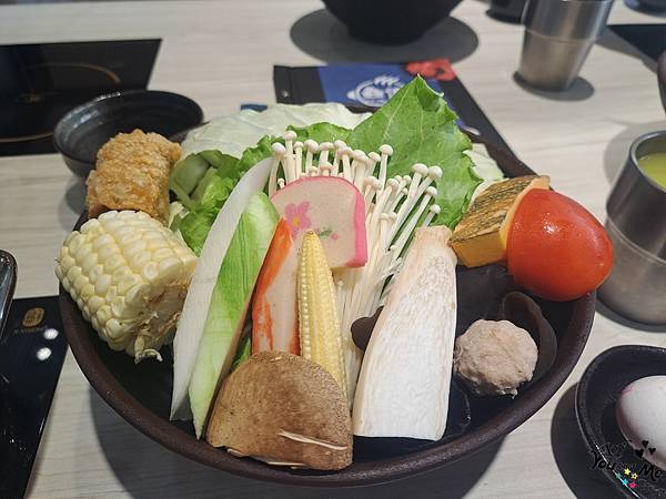 這邊的肉片是比較厚切的,吃起來較有嚼勁喔!湯頭很鮮甜,菜盤以蔬菜類的為主。