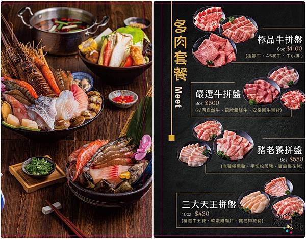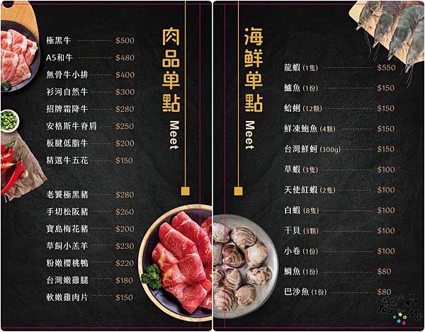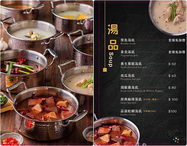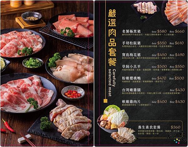 先選 肉品套餐附菜盤再選湯底及附餐(白飯、雞蛋、寬冬粉、王子麵、烏龍麵。五擇一)另要加一成服務費