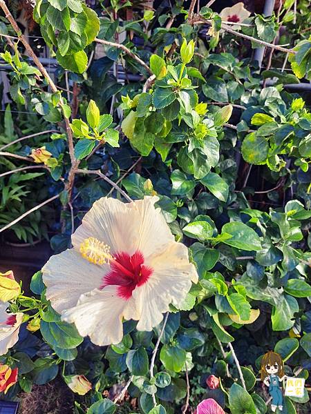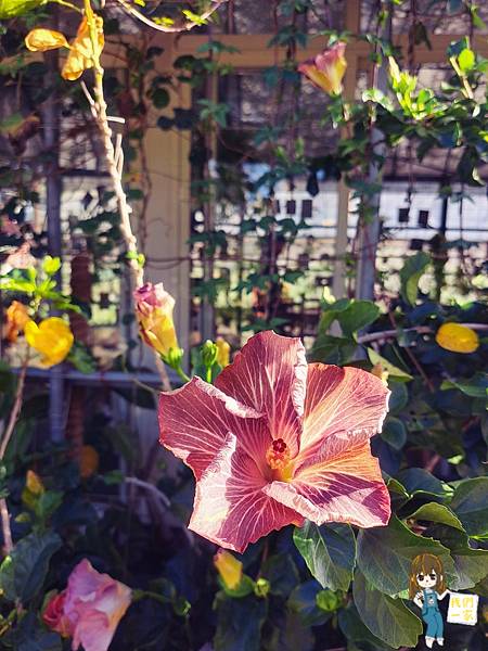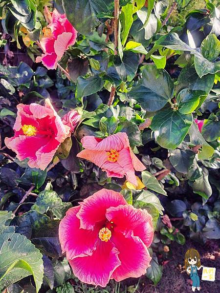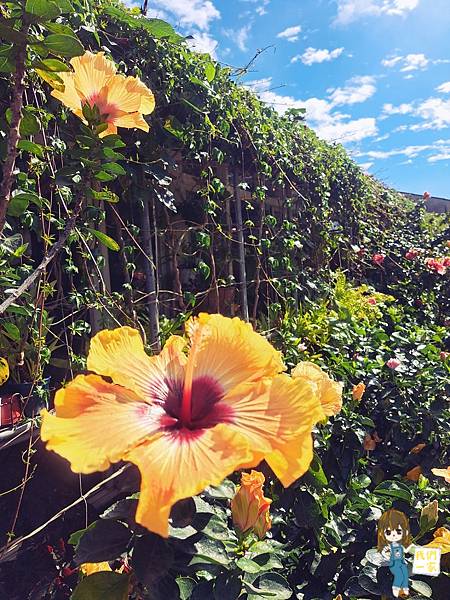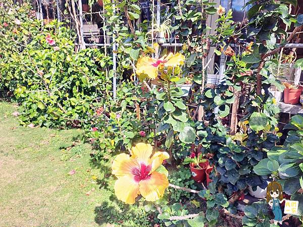 因為我們到的比較早,就先到戶外觀賞扶桑花,盛放的花朵及上艷麗、繽紛的花色,各種色彩交織在一起,構成繽紛的花海,我第一次看到這麼多不同色彩的扶桑花,真是大開眼界阿!!