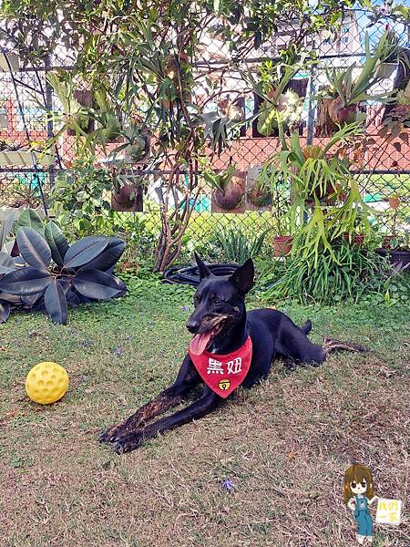 用完餐後正好遇到老闆跟店狗黑妞,身材超好的黑妞不但會接球跟飛盤,個性也超好的,難怪小朋友都喜歡找他玩~