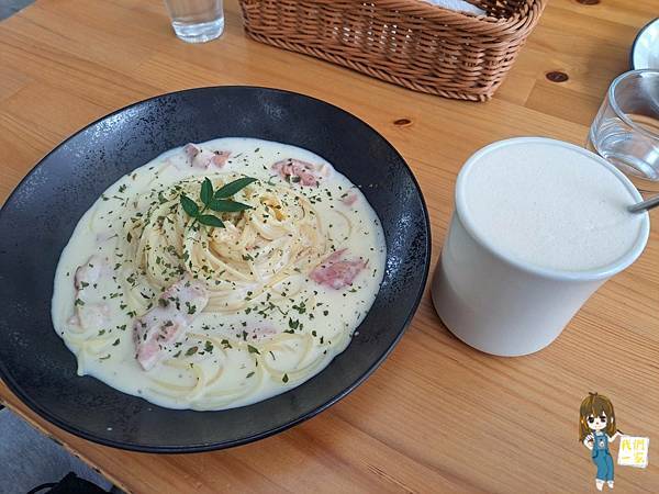 奶香白醬培根義大利麵 $260 套餐附一杯冰紅茶,更換飲品可折抵30元