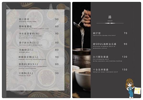 這間位於中壢圖書館附近的港式料理店是上次我們去吃客家餐廳時注意到的,因為看到好多人在門口等!想說這間是甚麼餐廳阿?? Google了一下竟然是港式餐廳!! 找了寒假的某一天帶著小宥來品嚐啦~~港soul創意港式料理是一種結合了香港傳統料理元素和創新概念的烹飪風格。這種料理風格將傳統的港式菜餚與當代的烹飪技巧和食材結合,創造出新穎而具有魅力的菜品。在港soul創意港式料理中,人們可以看到傳統的港式烹飪技巧,如燉、炒、蒸等,同時也會發現創新的元素,例如對食材的重新組合、烹調方法的改良以及菜品的擺盤設計等。