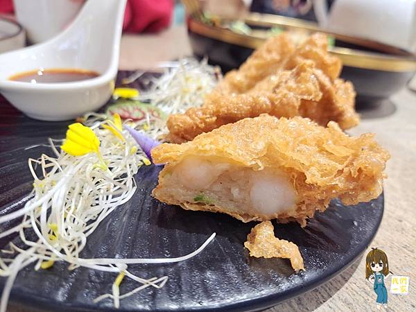 腐皮外層酥脆,內裡柔軟,經過炸製後的腐皮表面呈現出金黃色澤,吃起來酥脆爽口,給人一種獨特的咀嚼感。內層的鮮蝦肉質鮮嫩彈牙,配上沾醬更能夠提升整道菜的風味,讓口感更加豐富多變。