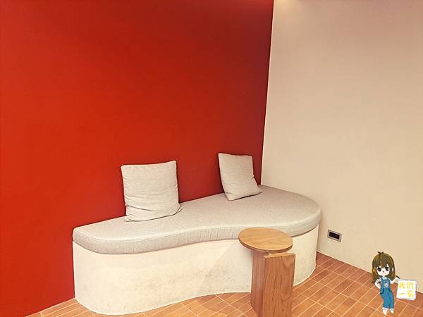側面兩扇木門進入店內,打開後會有別有洞天的景象,讓人驚喜連連。大紅色的櫃台牆面、幾張特別造型的桌椅,無一不展現出店主的用心與品味,打造一區能內用的小空間。