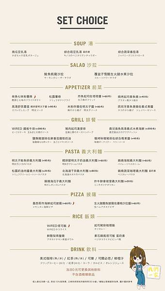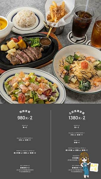 套餐飲料X2(加80元可更換其他飲料 不含酒精類飲品)