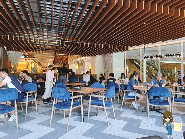 WIRED TOKYO桃園藝文店營造了一個非常棒的用餐環境,融合了木質元素和時尚氛圍,讓人感受到舒適又現代的氛圍。特別的是,店內設有一大片落地窗,透過窗戶可以欣賞到戶外的草坪、水池,以及午後陽光灑下的美麗景色。