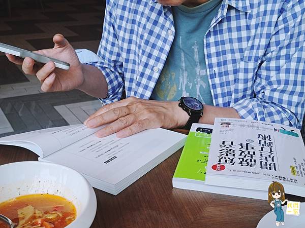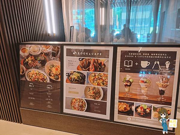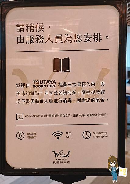 更特別的是我看到入口處的小白板上寫著:「歡迎自蔦屋書店攜帶三本書籍入內,與美味的餐點一同享受閱讀時光。」哇~~ 這個服務太貼心了,於是我趕快衝進書局喊小宥,請她帶3本想看的書,我們可以一邊吃甜點,一邊閱讀。