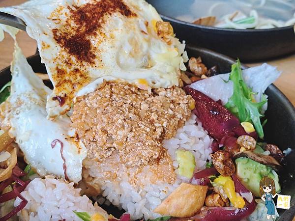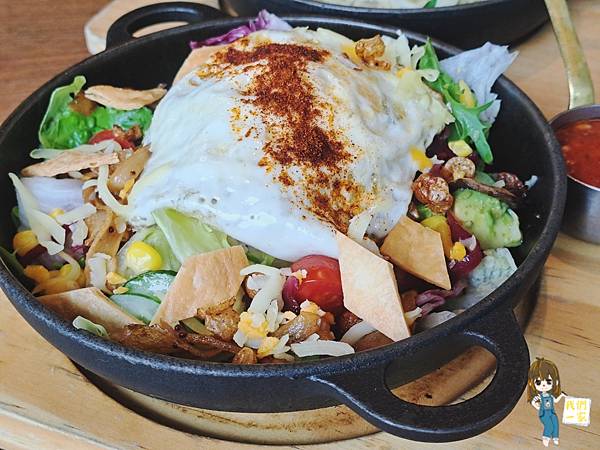 香糯的米飯搭配鮮脆的蔬菜和濃郁的豆腐塔可醬料,再加上酥脆的玉米片,帶來了豐富的口感和多層次的味覺享受。這道料理不僅色彩繽紛,還能讓人品味到多種風味的完美結合,是一道蠻特別的菜餚。