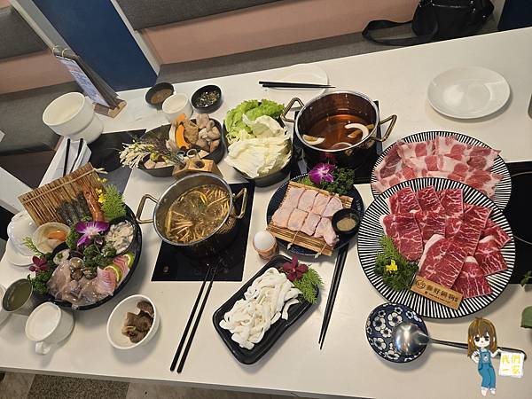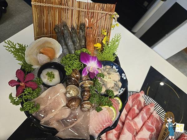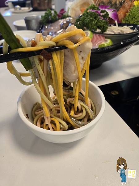 這次我們選了---經典雙人海陸套餐---,菜單豐富到炸裂!肉品三選二、9種超鮮海鮮、手工Q板條、彩色蕎麥麵,再搭配湯底和自助吧蔬菜,滿足味蕾的每一個角落。