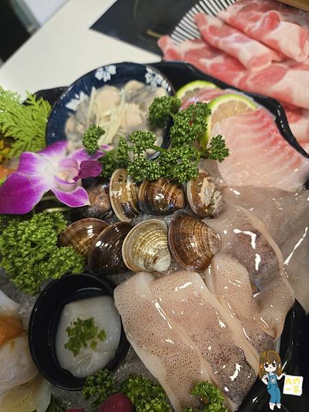 船凍鮮魷、北海道生食干貝、東石鮮蚵……每一種都超新鮮!涮煮後彈牙細嫩,與湯底的融合恰到好處,根本是一場味蕾的海洋旅行。