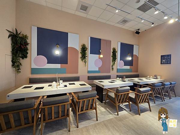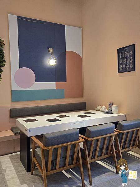 藝術畫背景區:此區背後的藝術畫作為餐廳增添了幾分藝術氣息,十分適合拍照,充滿現代感和創意。