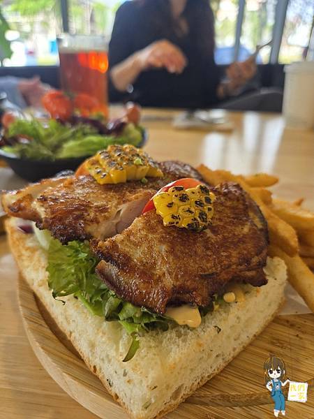 這道開放三明治是肉食愛好者的最愛,炸得金黃酥脆的雞腿排外酥內嫩,搭配新鮮生菜與酸甜的醃菜,為口感增添層次。煎得剛剛好的荷包蛋和多汁的番茄完美融合,再配上爽口的玉米粒,咬下一口就能感受到多重味覺的饗宴。搭配的是香氣十足的佛卡夏,整體價格為 $350,性價比極高。