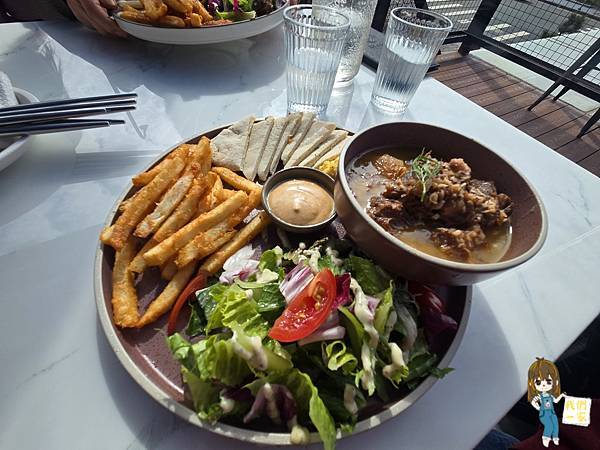 甜菜根燉牛肉軟爛多汁,牛肉湯汁的香氣迷人。甜菜跟吸附了牛肉的湯汁口感變得好吃更有層次了。薯條與炒蛋的搭配,則為整體增添了酥脆與滑嫩口感,滿足味蕾的層層需求。