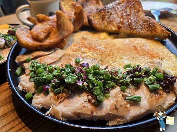 ✅ 舒肥雞胸 —— 低溫烹調的雞肉,搭配半熟或全熟的太陽雙蛋(可選擇),不過今天雞肉沒有很juicy~~