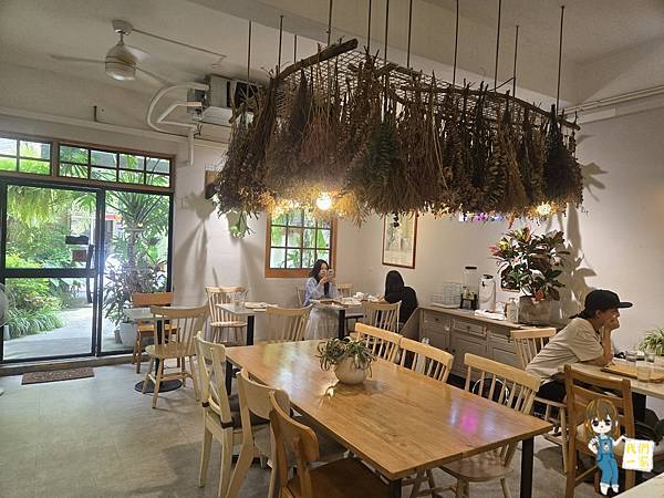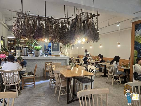 最吸睛的是天花板懸掛的乾燥花束,隨光影搖曳,浪漫又充滿氛圍感。這裡不像速食咖啡館,而更像是一個能讓人靜下心的角落。無論是來工作、閱讀,還是與朋友小聚,時間似乎都會在這裡慢下來。